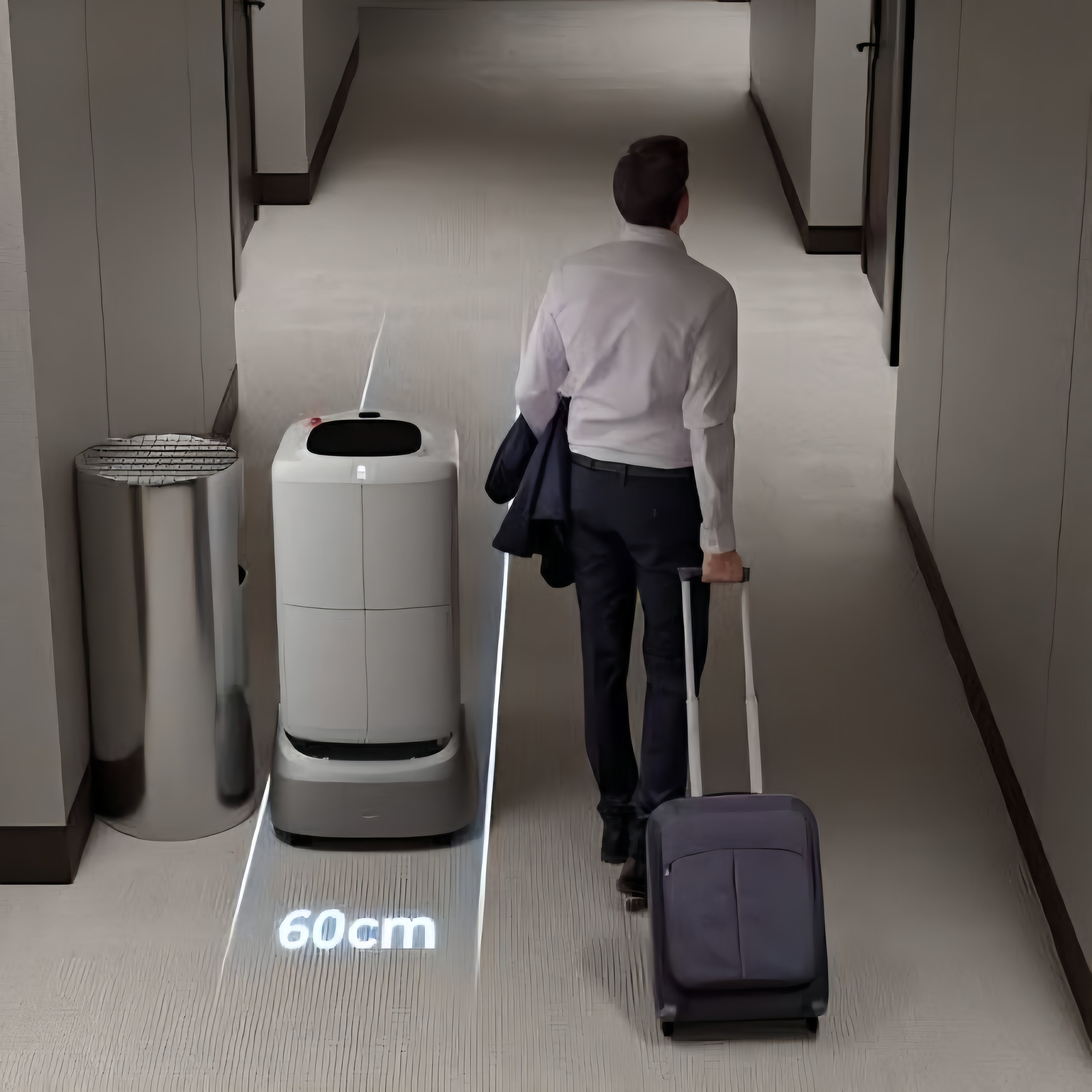 PUDU VSLAM+ navigation system is engineered specifically for semi-outdoor hotel environments. Unlike traditional delivery robots, the FlashBot excels not only in handling indoor room service but also seamlessly navigates complex semi-open areas such as garden corridors, fitness zones, and poolside areas, delivering exceptional human-robot interaction.